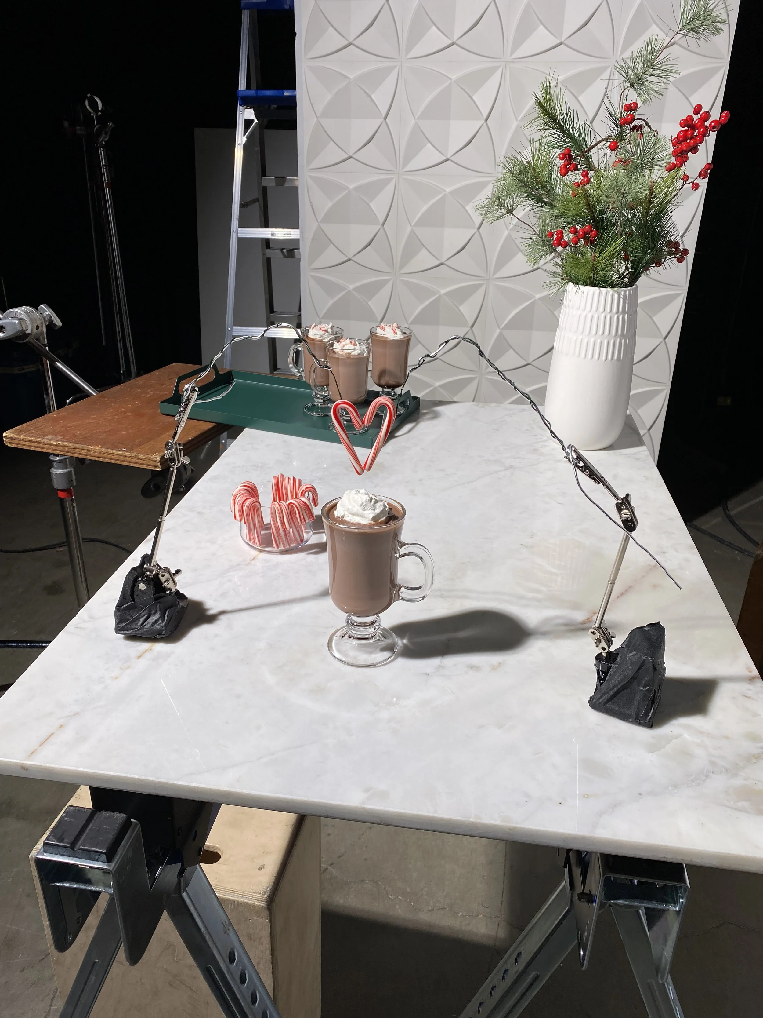 For certain months that have holidays we get a little more creative with the cocktails. This video was for the month of October and play on the drinks name, which is Rum Mummy. The food stylist did an awesome job with the lemon peel and we even wrapped up the AD’s arm to look like a mummy. Occasionally I will also act as talent for the shoot. In this case I assembled the cocktail. I also worked on the prop styling for this shoot.